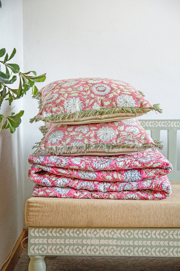 Hand Block Printed Cushions - The Summer Garden Print