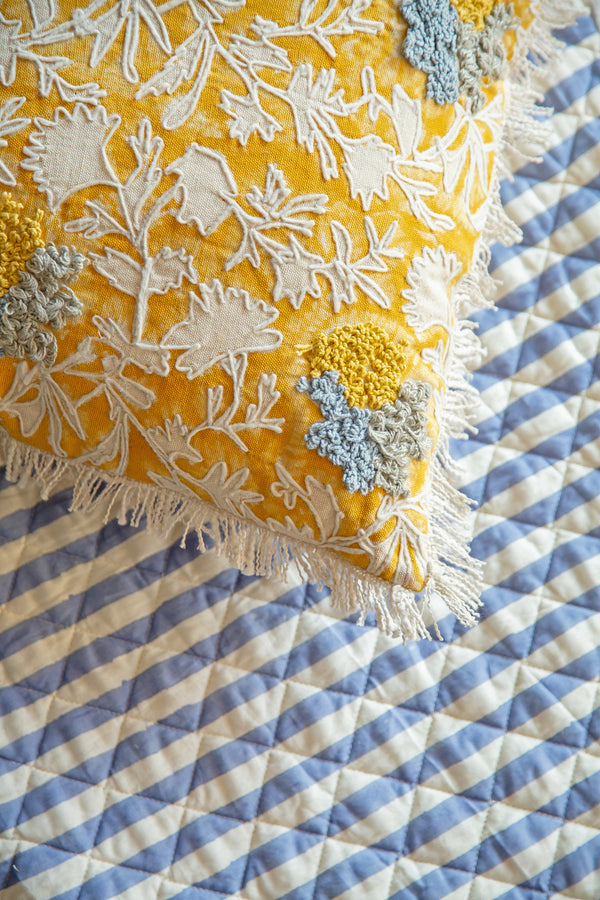 Hand Block Printed & Embroidered Cushions - The Marigold Embroidered Print