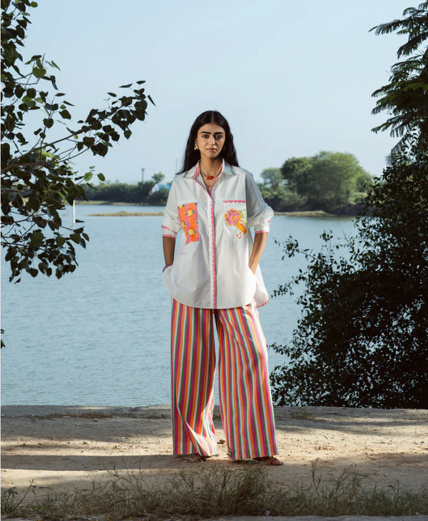 Cotton Twill Trousers - Pistachio Bloom Trousers