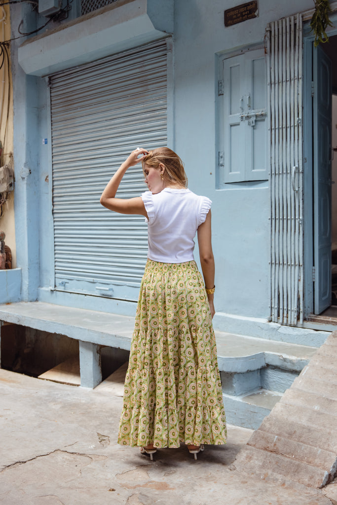 The Pia Skirt - Olive Sunburst