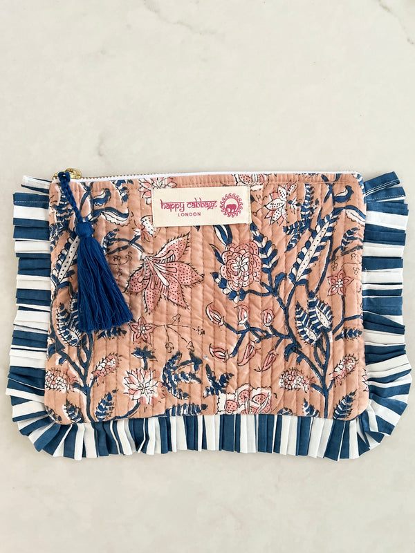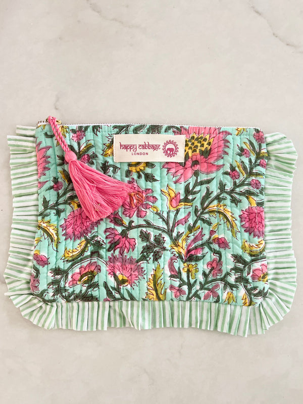 Block Printed Cotton Pouch - Blue, Red & Yellow