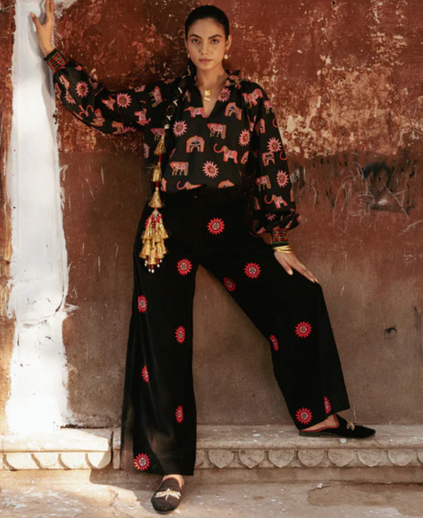 Blossom Sun Embroidered trousers - Black Cord