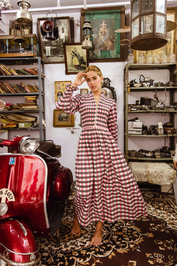 SALE The Claudia, Berry Pink Corduroy Dress with Block Print Lining