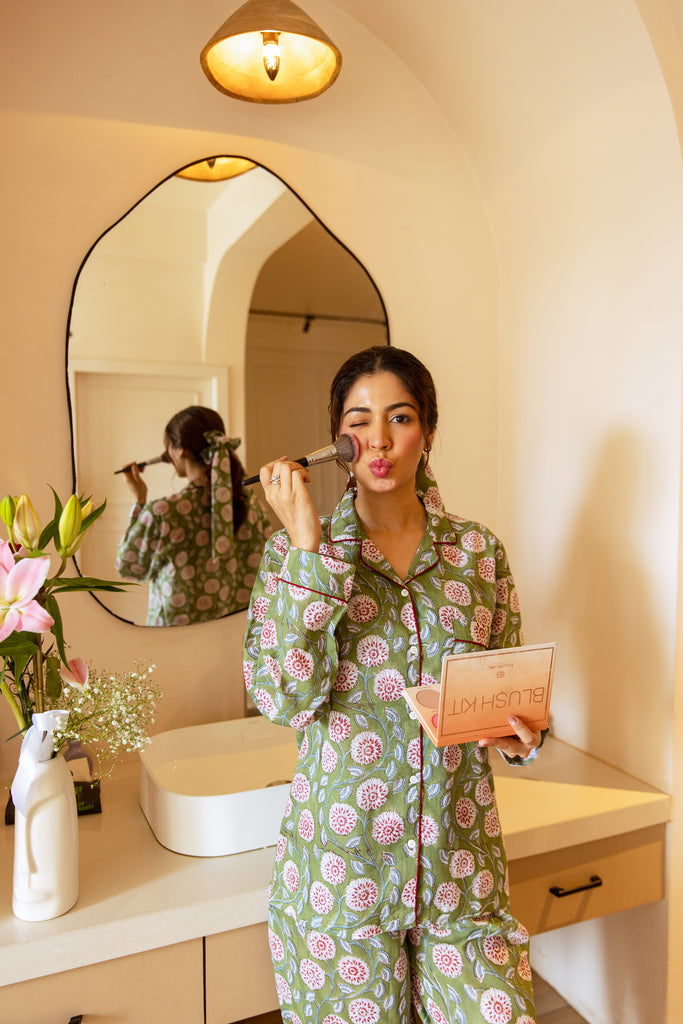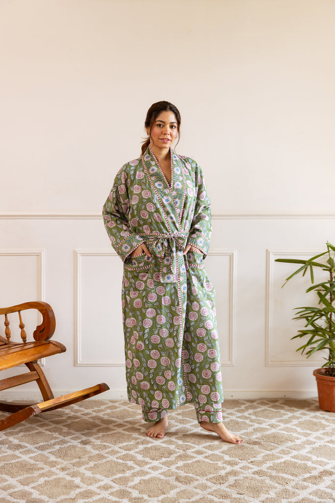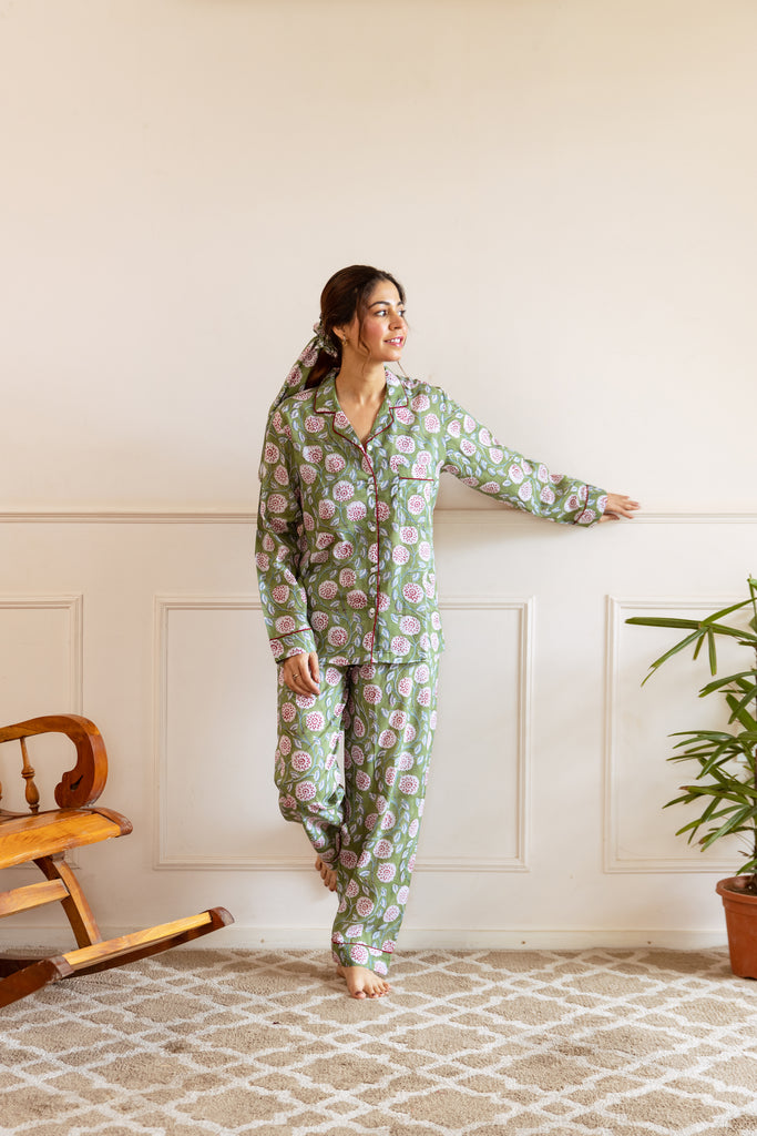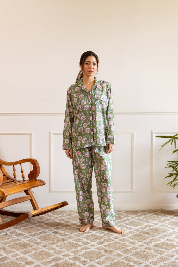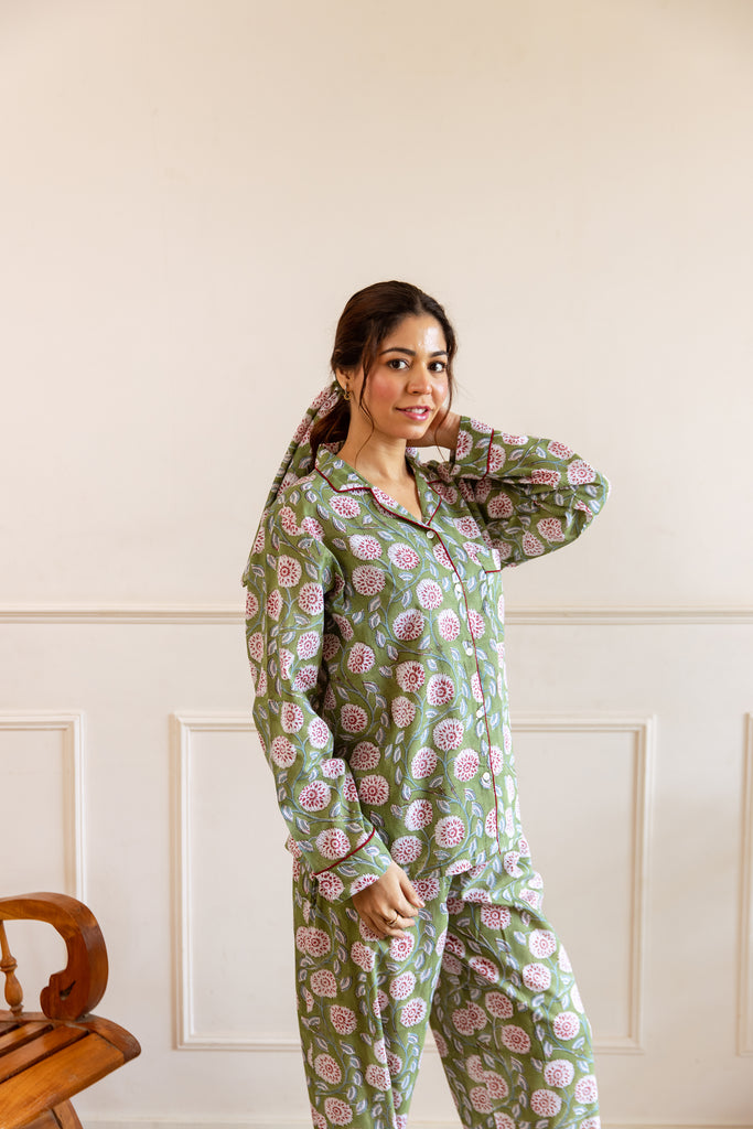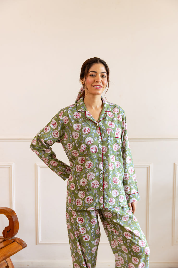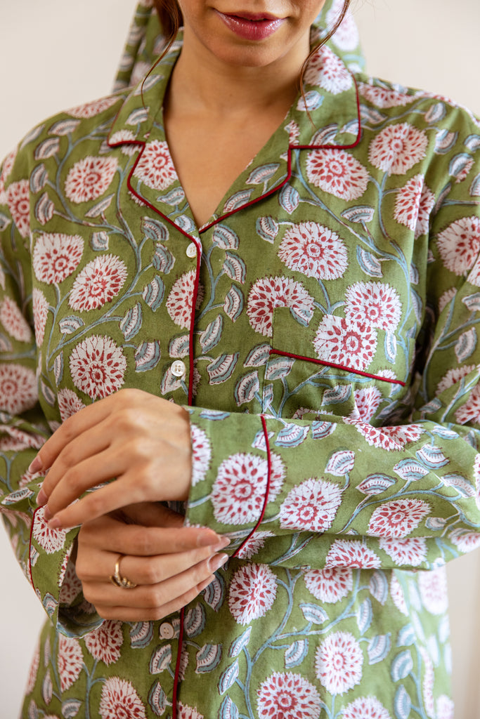 Designed for ultimate comfort and style, made from 100% premium lightweight cotton, these pyjamas are both breathable and soft, ensuring a restful night's sleep. Hand printed by artisans in Jaipur, India, using the traditional art of hand block printing.