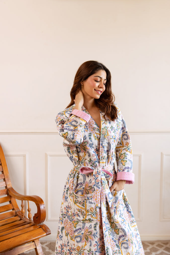 COMING SOON Luxury Quilted Hand Block Print Robe - Candy Pink Garden