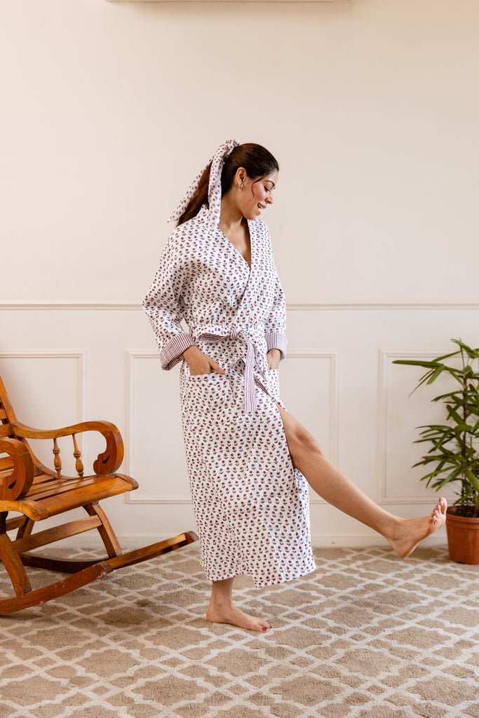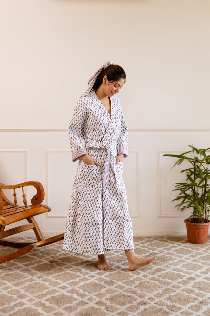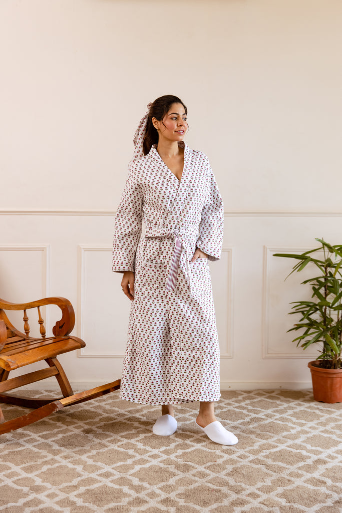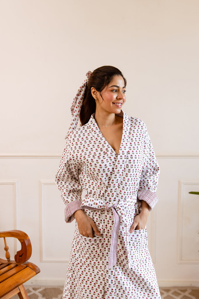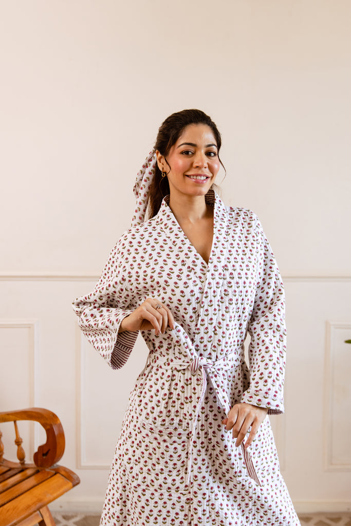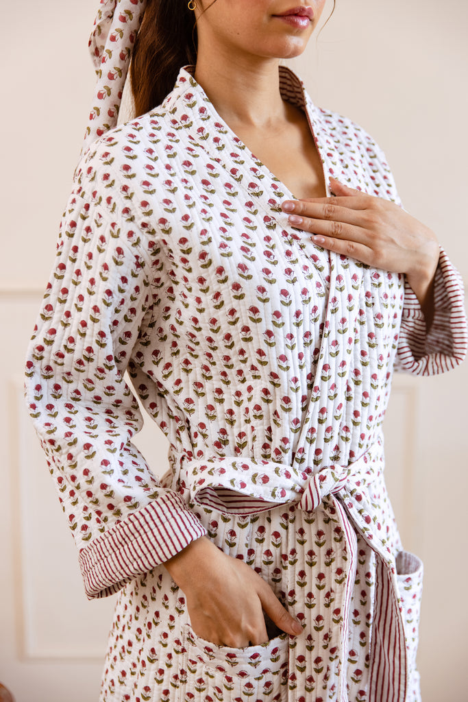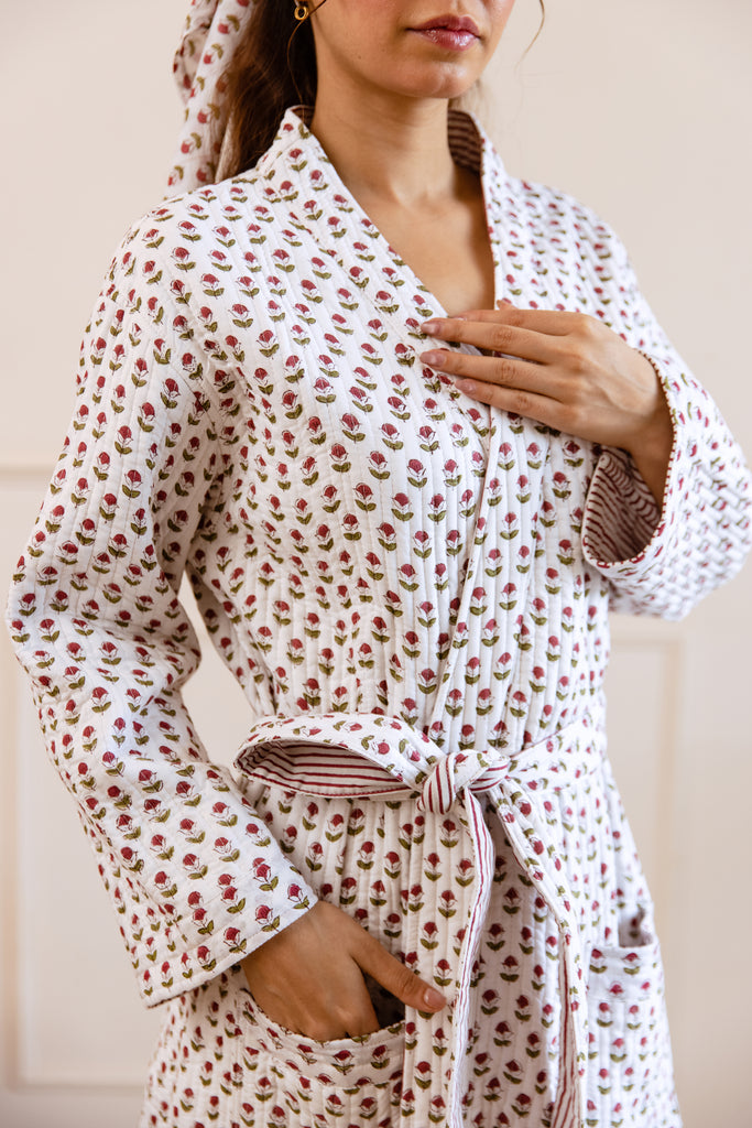 COMING SOON Luxury Quilted Hand Block Print Robe - Wild Rose