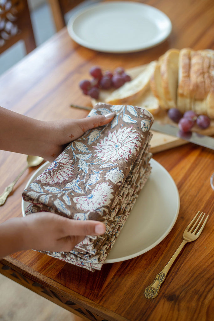 Handcrafted Magic – each napkin is printed by hand using carved wooden blocks by skilled Indian artisans. Wonderfully slow, delightfully imperfect, completely authentic.