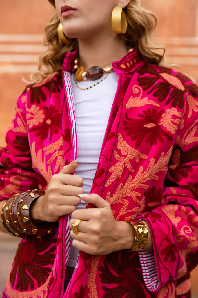 Whether you’re looking for a boho chic jacket, an artisan embroidered coat, or a statement outerwear piece, this Suzani jacket is a must-have for lovers of unique, ethically crafted fashion.